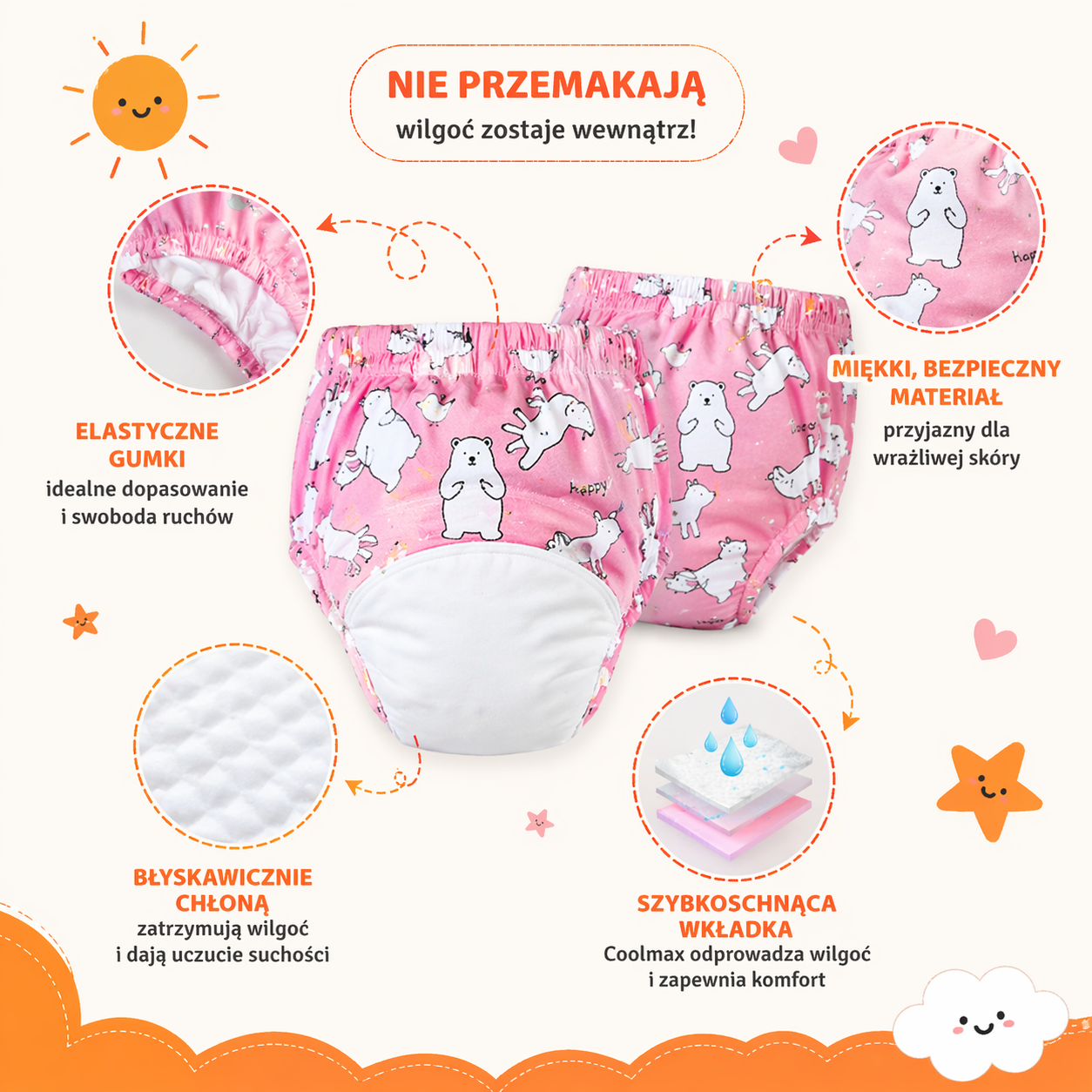 BabySafe – Nie przemakalne pieluszki treningowe dla dzieci wielokrotnego użytku (4szt.)